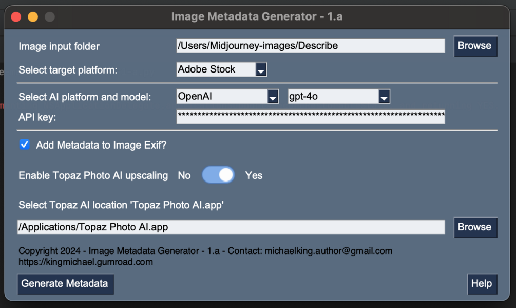 AI Power - Image Metadata Generator - Create Catalogues for Shutterstock, Adobe Stock, Freepik (with automated Topaz AI upscaling)